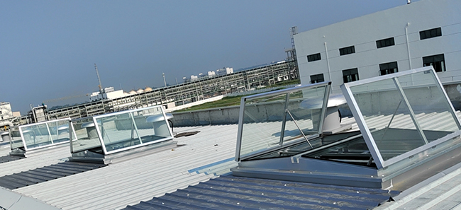 我公司承接安徽寧億泰科技有限公司乙類、丙類倉庫電動排煙天窗工程,選用三角形排煙天窗,配置螺桿開窗機、防爆開窗機、消防聯(lián)動控制裝置,天窗及所有配套產(chǎn)品已經(jīng)全部安裝完成。